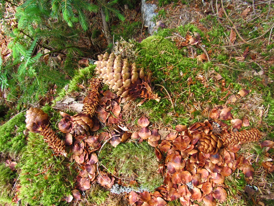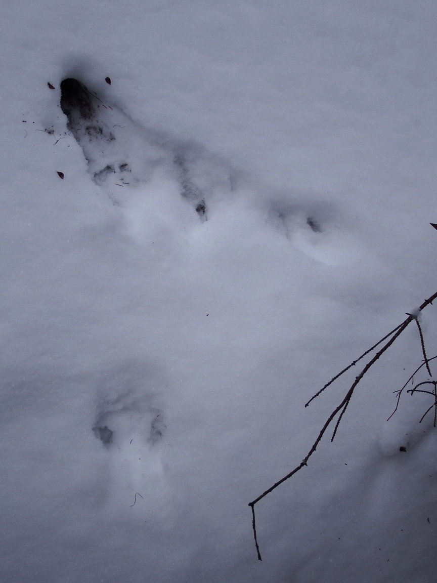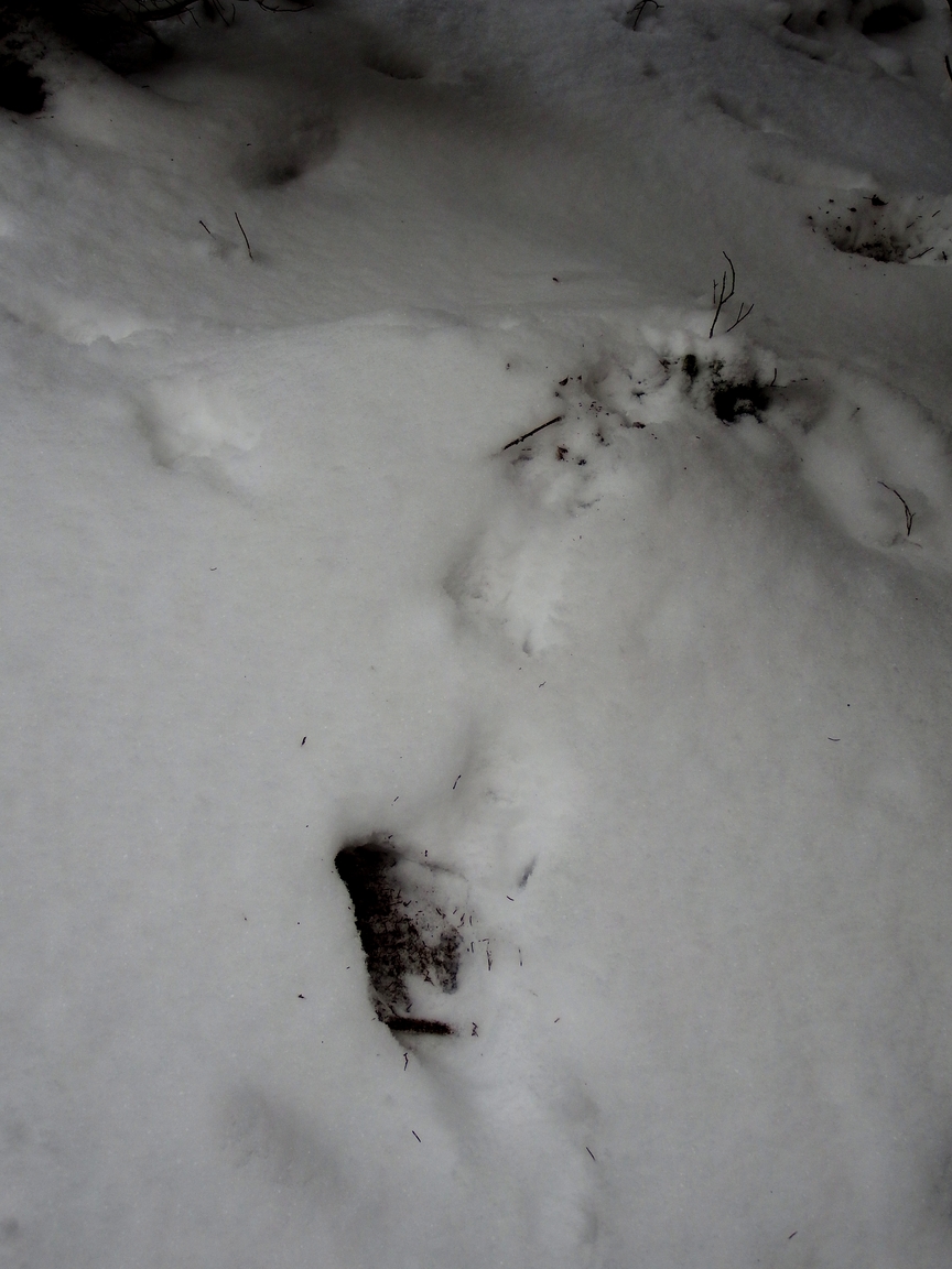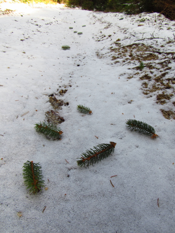 Taky jedny (pravděpodobně) veverčí stopy, zase trochu jinačí.