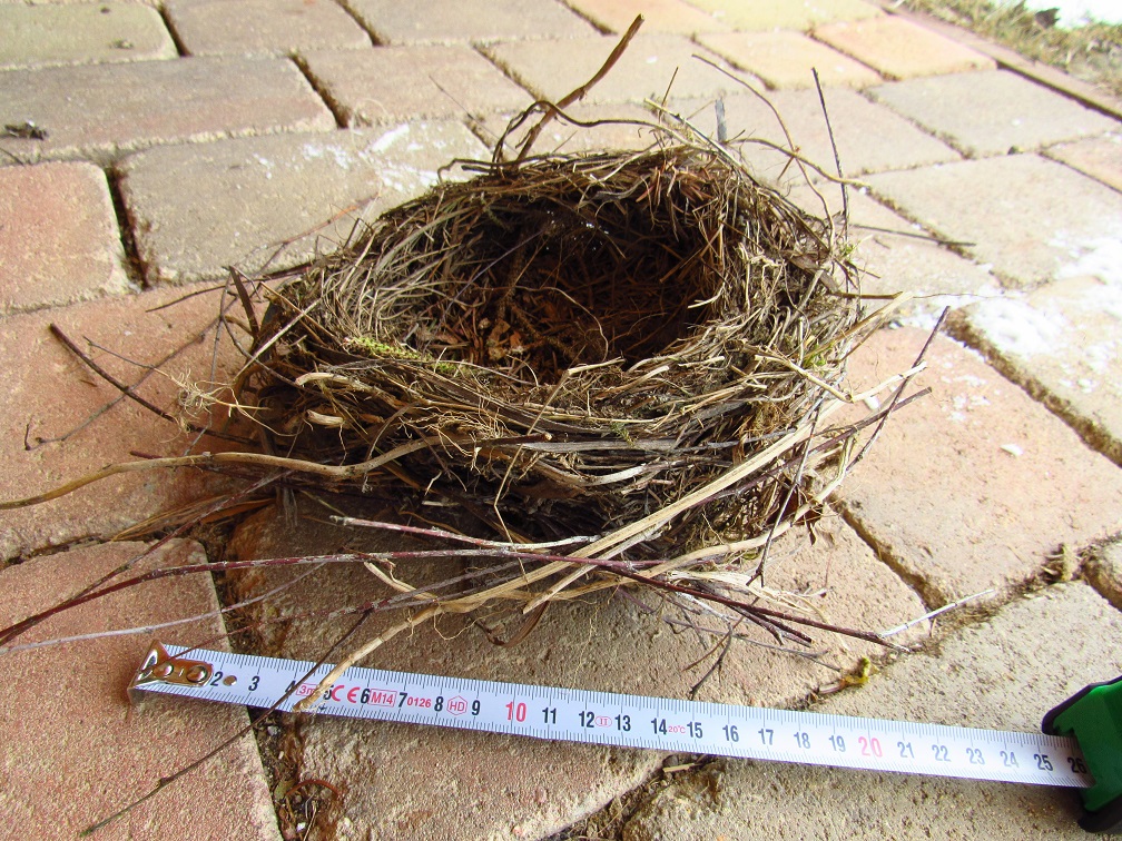Mělo by jít o staré hnízdo drozda zpěvného. Hnízdo staví ze suché trávy, stonků, větviček a mechu (dle Svenssona slouží mech k maskování). Vnitřní část je vymazána směsí hlíny, ztrouchnivělého dřeva a slin. Hnízdo je díky tomu velmi odolné (často přežívá i měsíce po jeho opuštění - ostatně moje fotka je z podzimu) a též dobře rozpoznatelné od ostatních drozdů.
