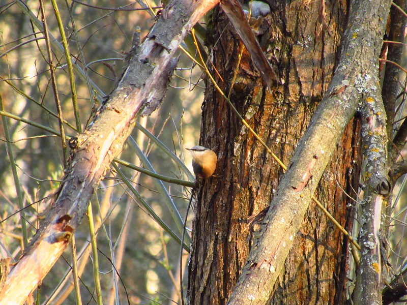 Brhlík si zmenšuje díru po strakapoudovi na svojí velikost.