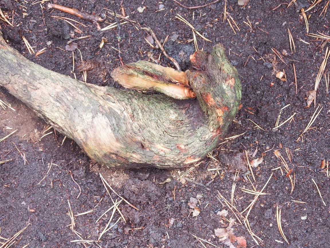 Vlk obecný, vlčí hračky. Tento klacek sloužil jako hračka skupině vlčat, potvrzeno nálezy stop i umístěnou fotopastí. Povšimněte si stop po zubech.