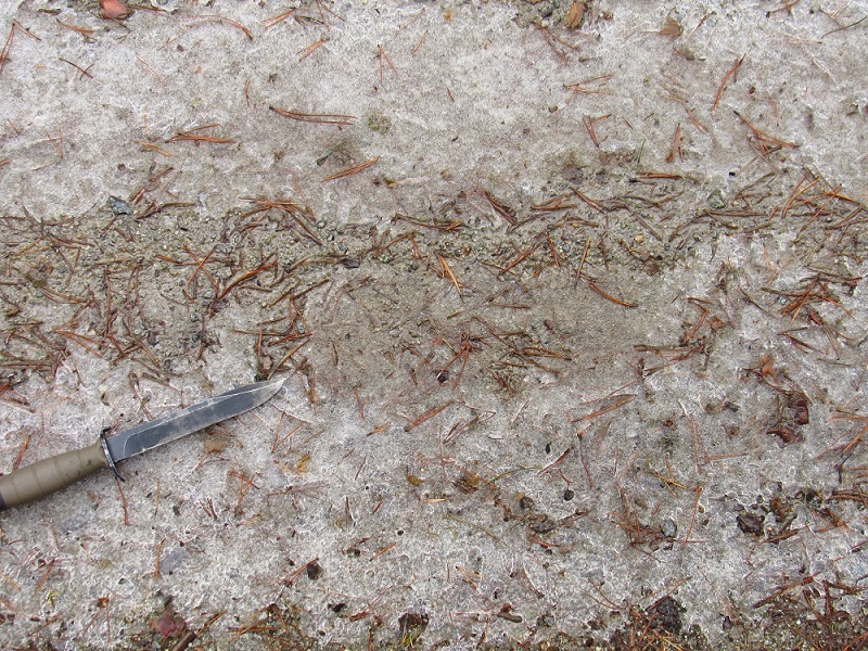 Pomalý běh (první třetina stopy se vytrhává a posunuje dozadu, při zvyšující se rychlosti se posunuje dál a drolí se, špička zůstává, protože při běhu zvedám víc nohy a zakopávám)