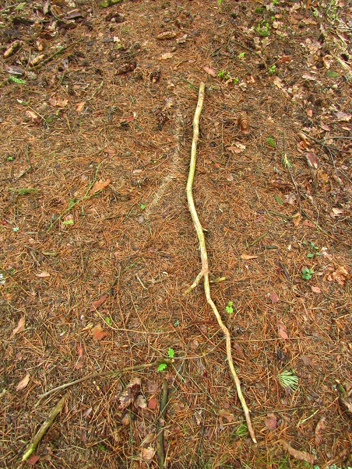 Po krátkým dešti zůstává někdy i pod tenkýma větvema sucho, člověk je odkopne/posune a je dobře znát i směr pohybu.