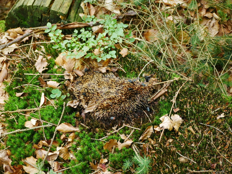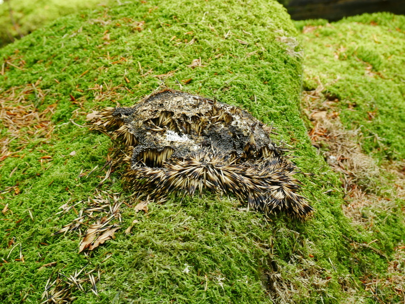 Výr velký (bubo bubo), zbytky ježka. Poznámka: Ježci jsou pro výra velkého vcelku typickou kořistí a nález podobných zbytků naznačuje přítomnost této velké sovy. / Eagle-owl, hedgehog remains. Note: Hedgehogs are quite typical prey for eagle-owl and remains like these indicates presence of this large owl.
