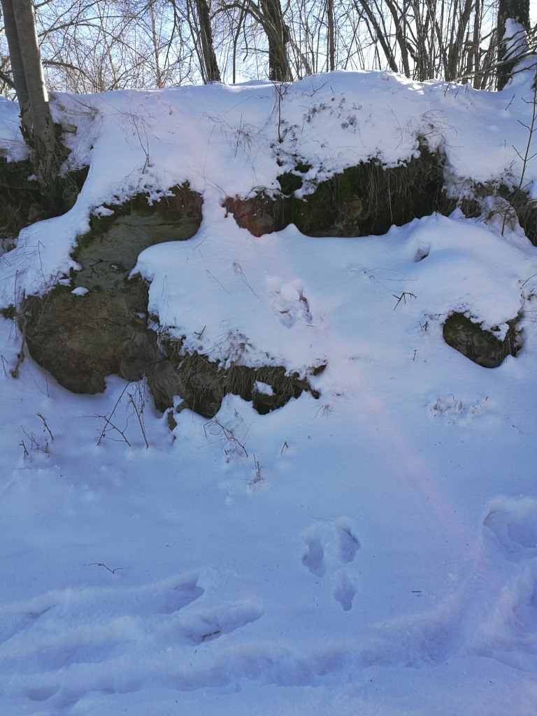 potřeboval bych trochu napovědět. Nejsem si moc jistý určením, stopy nebyly čitelné kvůli prašanu. Pouze v jednom místě jakž takž šly přečíst, ale stejně si nejsem moc jistý. Takže jsem zkoušel rozpoznat podle stopní dráhy a chování. Na začátku to dvěma skoky vyskočilo na cca 2 m vysokou hranu úvozu dále to pak seskočilo z 1,80 m starého základu chalupy. Délka kroku cca 100-120. Na konci to podlezlo kmen cca 25 cm nad terénem. Tipoval bych lišku, ale dost mě zarazily ty velké skoky.