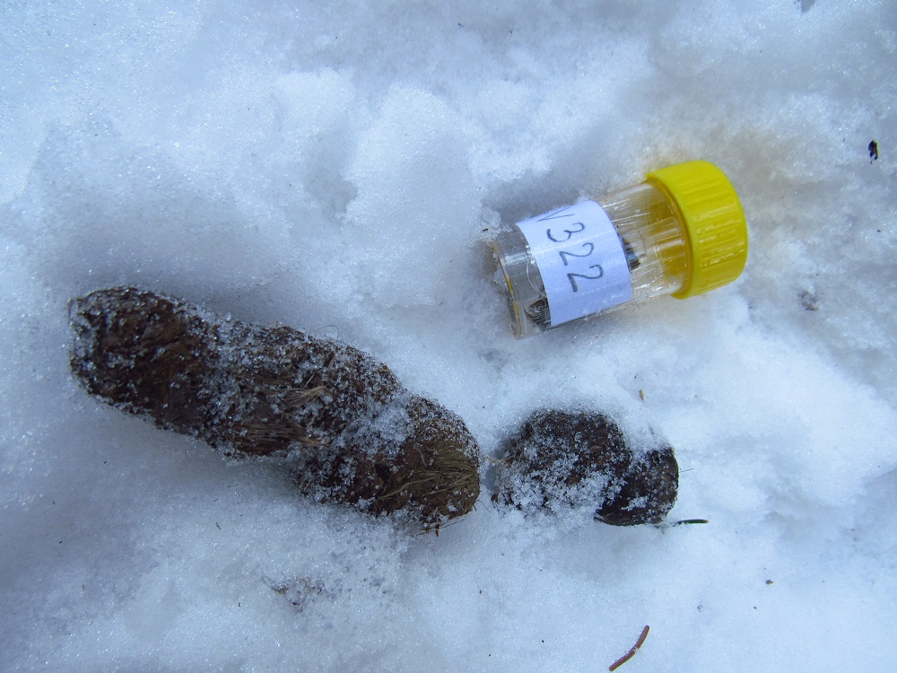 Tak přidám i "svůj trus" do mlýna tentokrát trochu omrzlé. První foto je ponálezový stav. Pozn. vzorek je trochu "poškozen" - ve stopě jsem ho omylem nakopl 0:)
