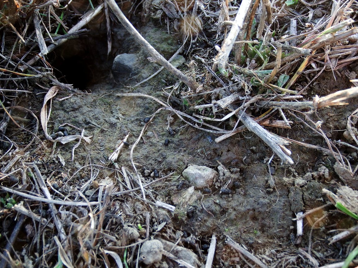 Common vole (Microtus arvalis) is a basic prey for a numbers of predators. The common biotope of the common voles are pastures, fields and meadows. We can identify an active den thanks to a scat in the paths and a chewed plants. We can also often see small pieces of grass around the den.
