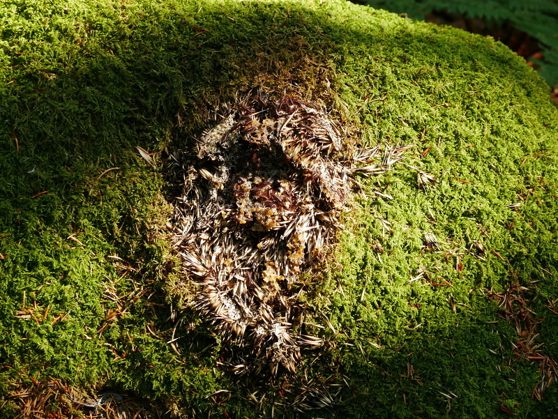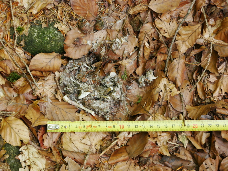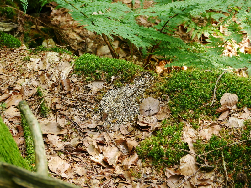 Výr velký (bubo bubo), zbytky ježka. Poznámka: Ježci jsou pro výra velkého vcelku typickou kořistí a nález podobných zbytků naznačuje přítomnost této velké sovy. / Eagle-owl, hedgehog remains. Note: Hedgehogs are quite typical prey for eagle-owl and remains like these indicates presence of this large owl.