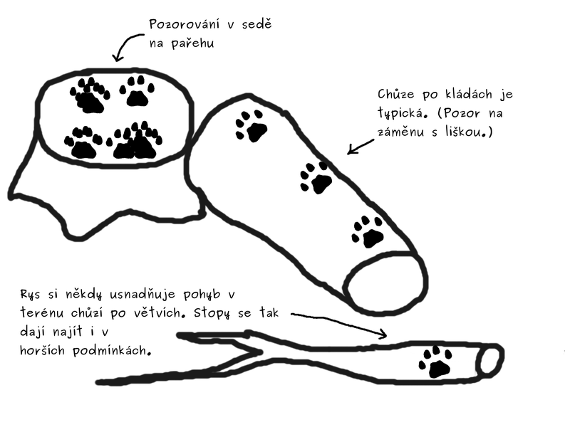 - Rys si někdy usnadňuje pohyb v terénu chůzí po větvích. Stopy se tak dají najít i v horších podmínkách.