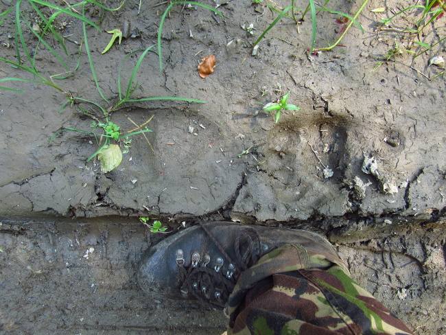 Information about animal tracking and signs of specific animal species (animal tracks, trails, specific behavior, scat).