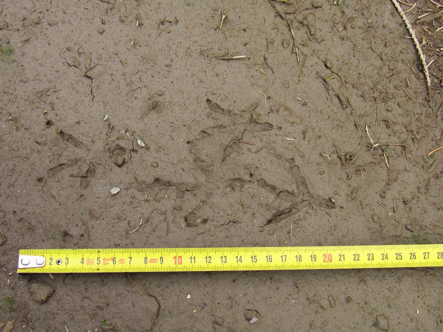 Information about animal tracking and signs of specific animal species (animal tracks, trails, specific behavior, scat).