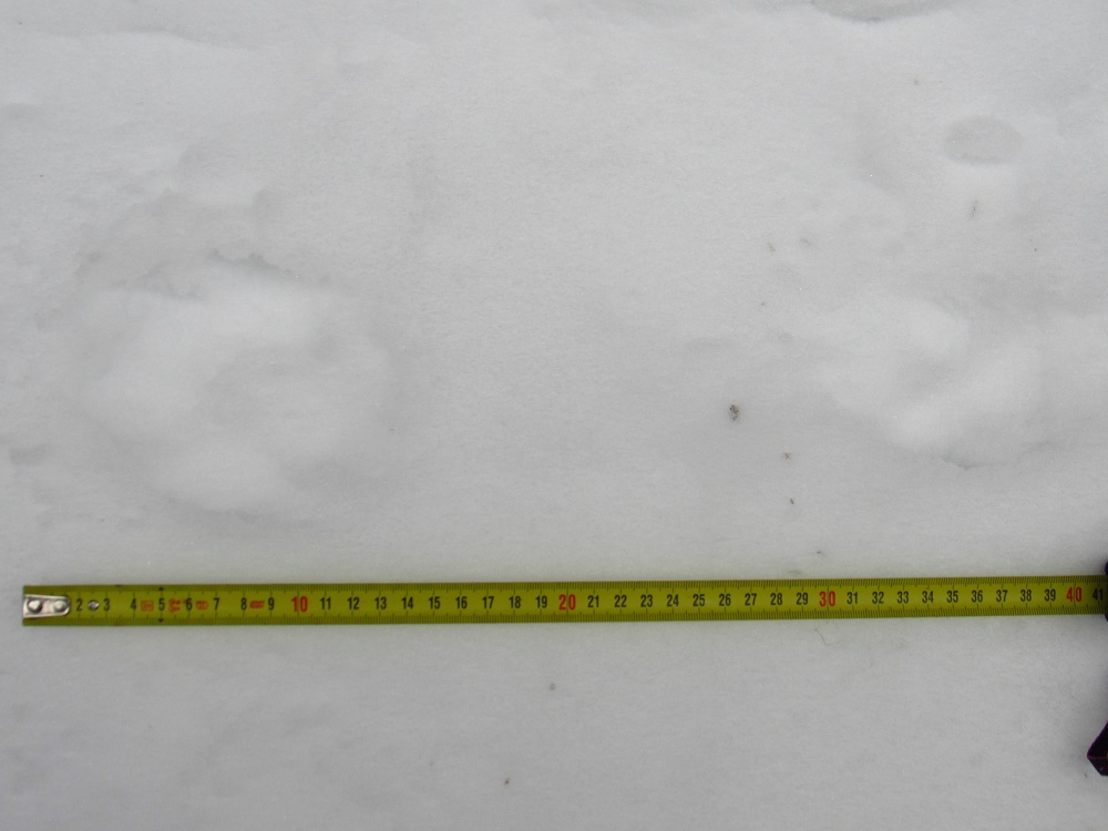 Vlk obecný, jednotlivá stopa. Všimněte si masivních drápů a předsunutí předních prstů před zadními. / gray wolf (canis lupus), single track. Notice massive claws and placing of middle digital pads in the front of others