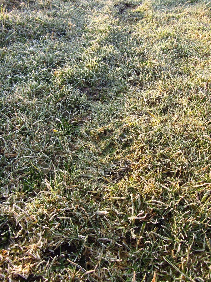 Pomalý běh (první třetina stopy se vytrhává a posunuje dozadu, při zvyšující se rychlosti se posunuje dál a drolí se, špička zůstává, protože při běhu zvedám víc nohy a zakopávám)