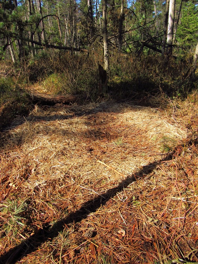 Prasečí drbiště. Na první pohled dík blátu omytému deštěm od běžné břízy téměř neznatelné. Ale při bližším pohledu a hlavně na dotek byla kůra ohoblovaná do hladka :)