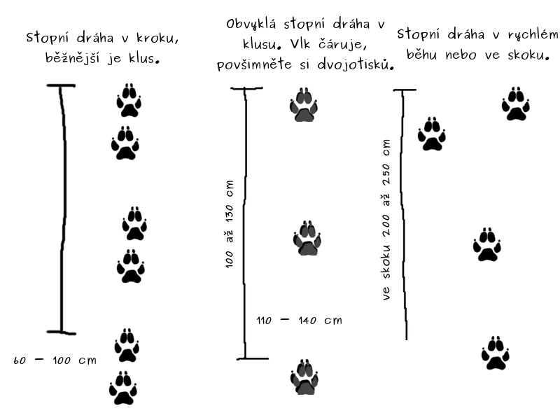 vlčí stopa, vzorová ilustrace