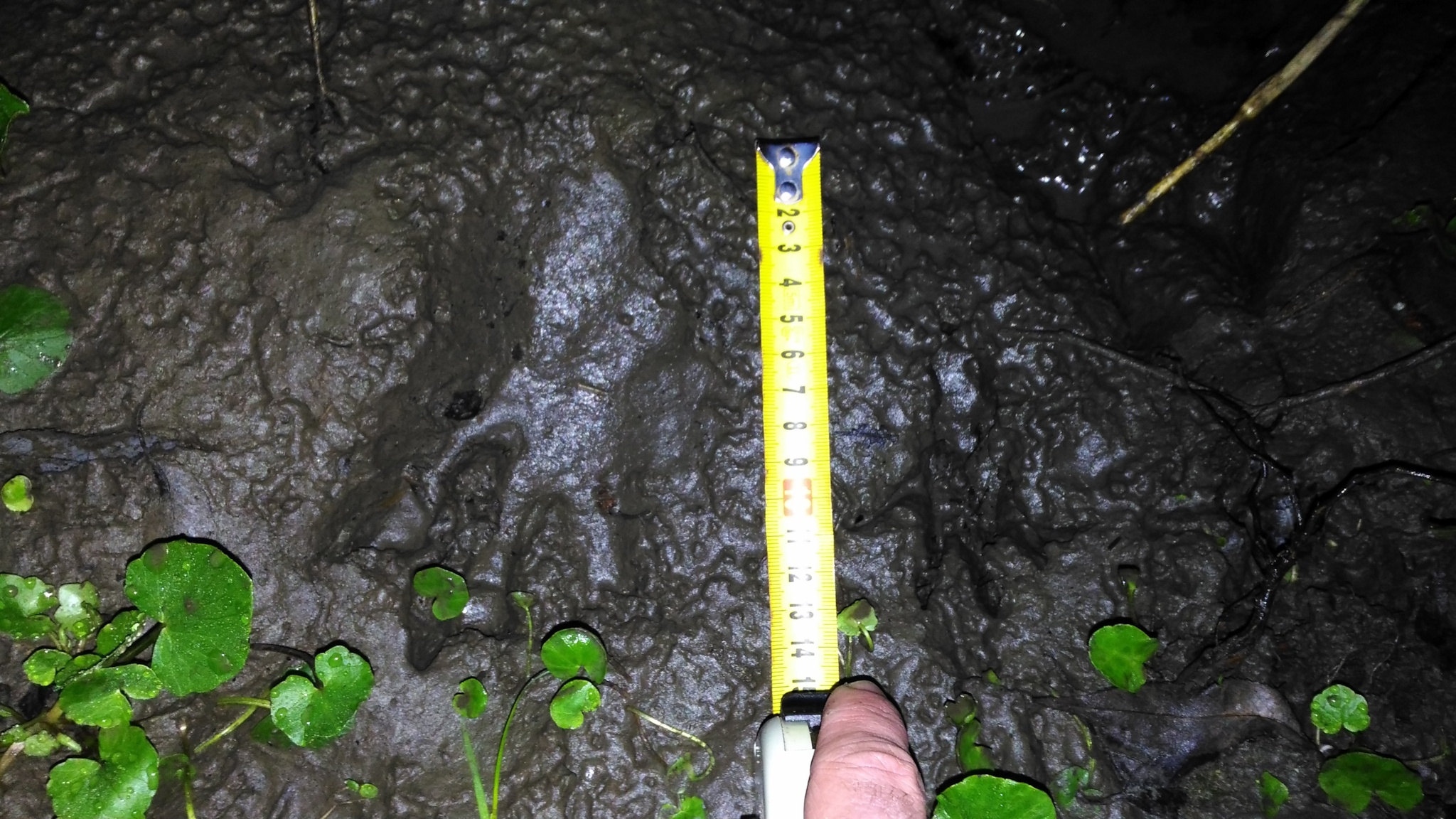 Dík za tip. Čéče... :/ ....ač by to bylo krásné, obávám se, že jde opravdu spíšo přední packu - s ohledem na polohu a stáří stopy, navíc by to již musel být roční bobr (mladé mají cca květen-červen) a to bych tu stopu čekal menší (ovšem tohle je jen můj subjektivní odhad bez zkušenosti). Ten tvar může být zkreslený hodně hlubokým a měkým blátem, takže se otiskla i další část končetiny.