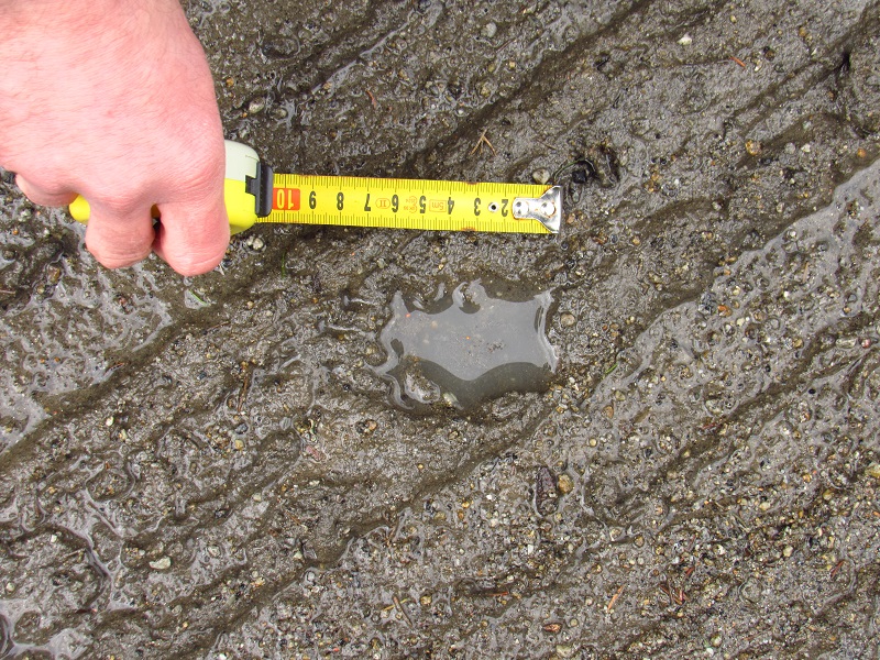 Dobrá stopa - otisk paty není skoro vidět, ale drápy a velikost ho prozradí: Jezevec má pět prstů (stejně jako mmj další lasicovití, např. třeba vydra) a k tomu velmi dlouhé drápy. Hezky je to vidět tady).