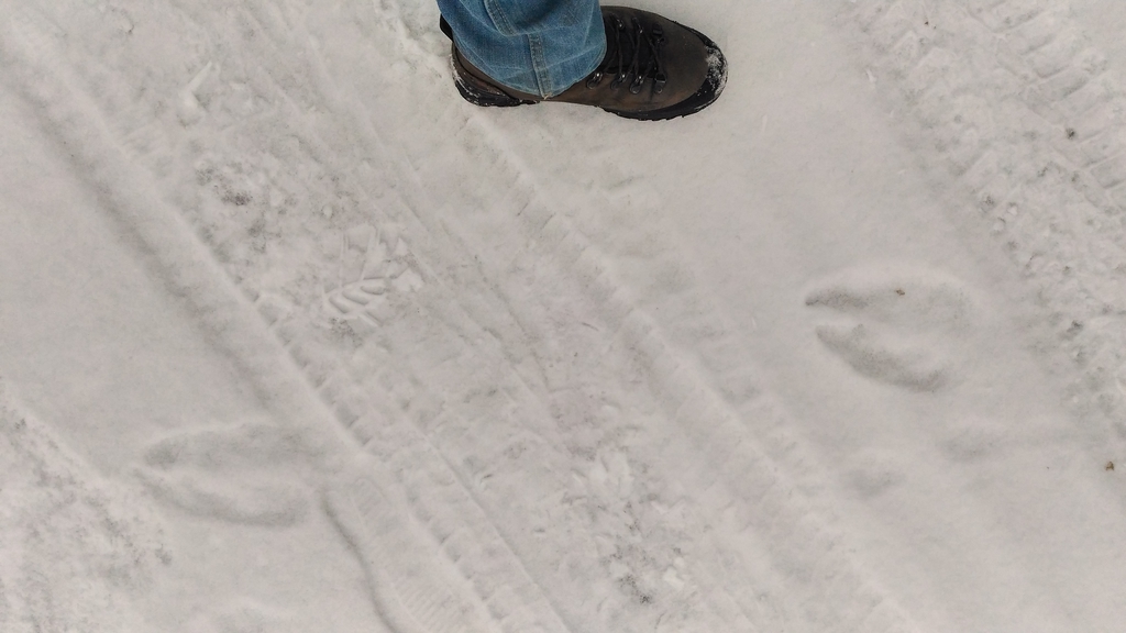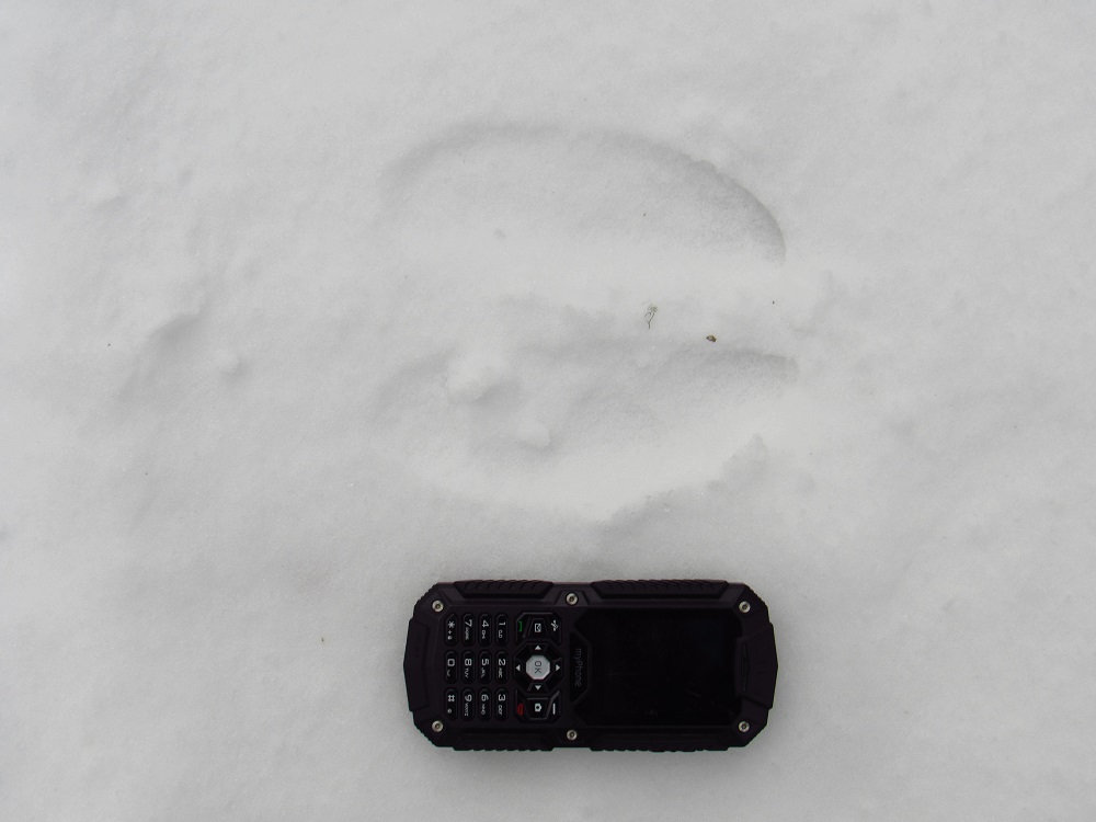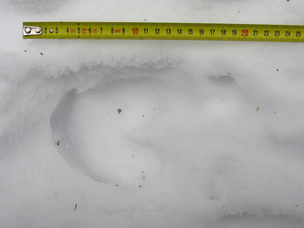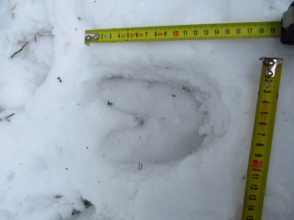 A přidám ještě jednu losí stopu na udusaném parkovišti v tenké vrstvě sněhu: