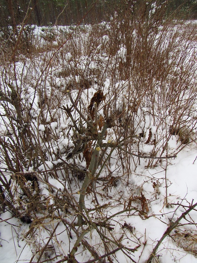Ukázka losího "řádění" v terénu, menší dřeviny vypadají jako po zásahu šíleného zahradníka s křovinořezem :)