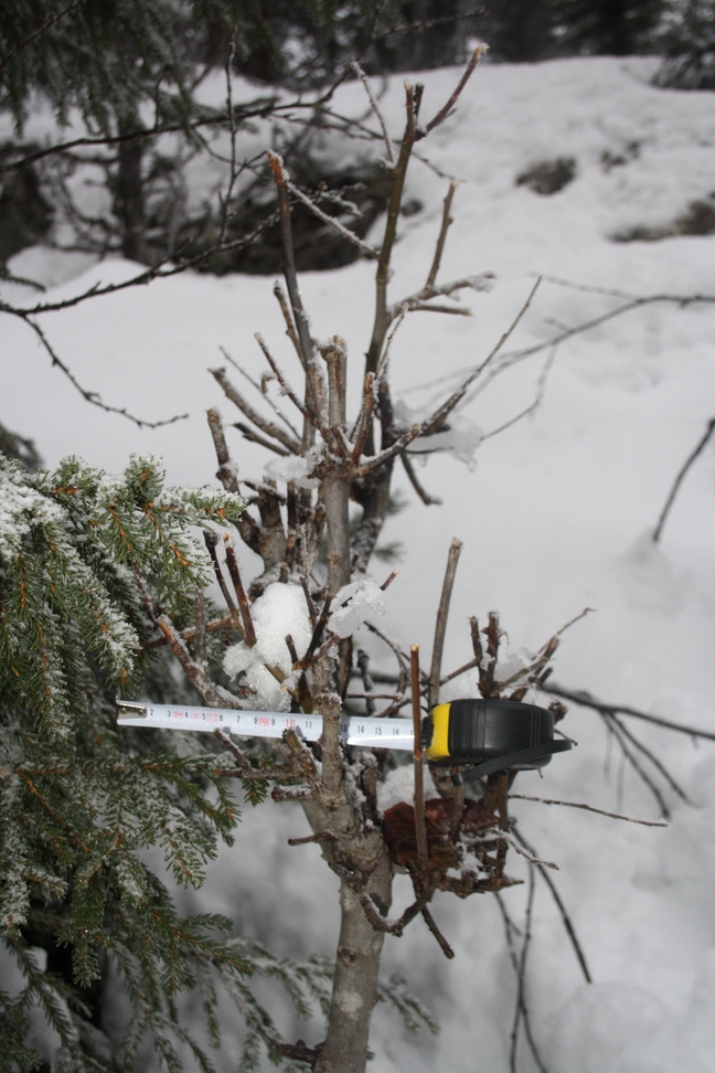 Typický okus menších dřevin, které se v důsledku toho přeměňují v podivné pokroucené "bonsaje". A kontrast s těmi většími, které zůstávají zachovány: (nad hranicí cca 2 metry):