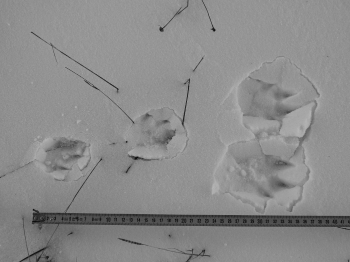 Information about animal tracking and signs of specific animal species (animal tracks, trails, specific behavior, scat).